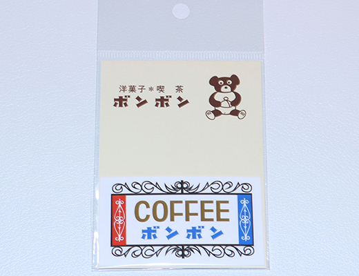 デザインやカラーにこだわり、裏面にも後ろ姿のくまちゃんとBonBonのロゴ入りのタグをつけました。