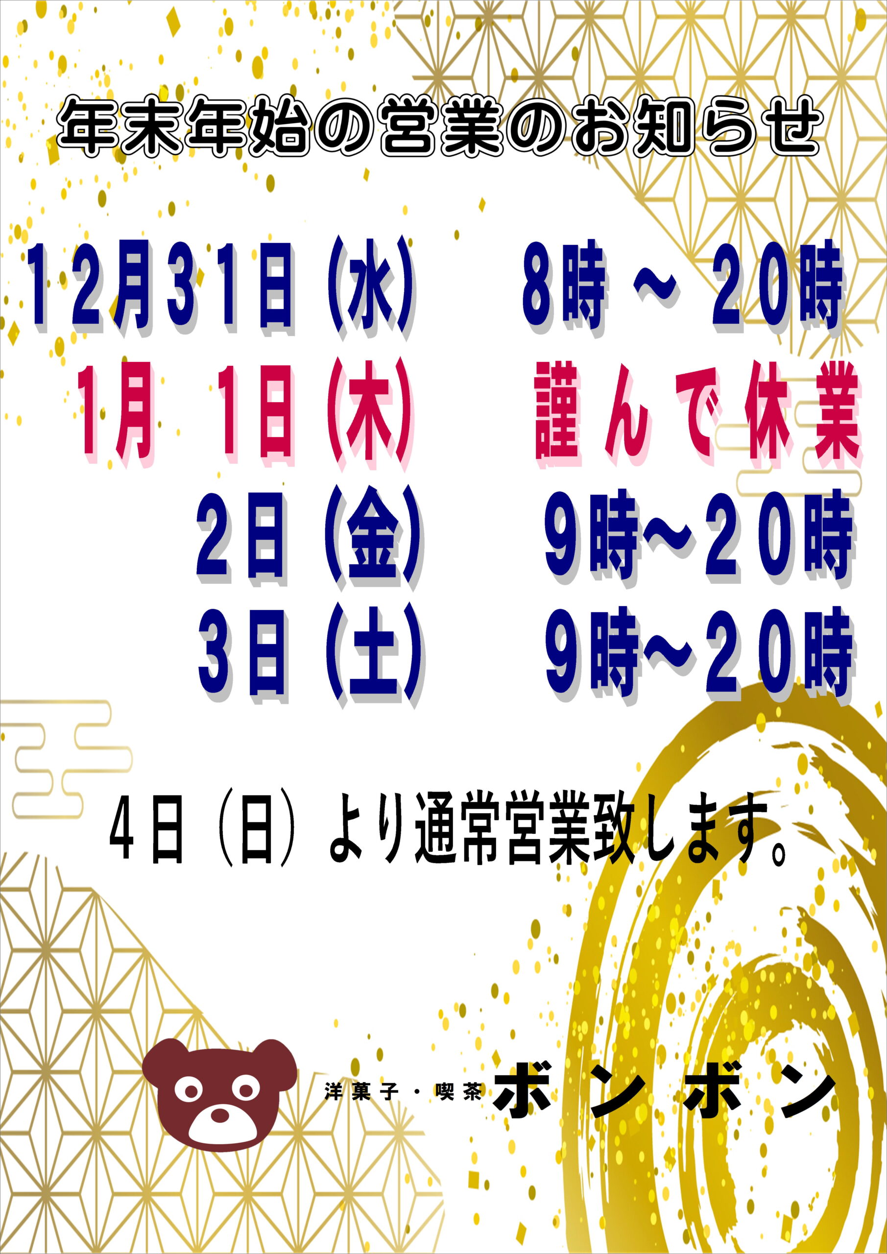 31日は商品がなくなりましたら早めに閉店することがございます。