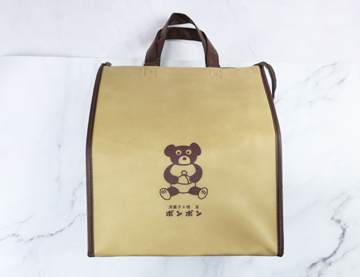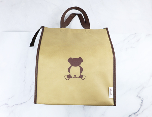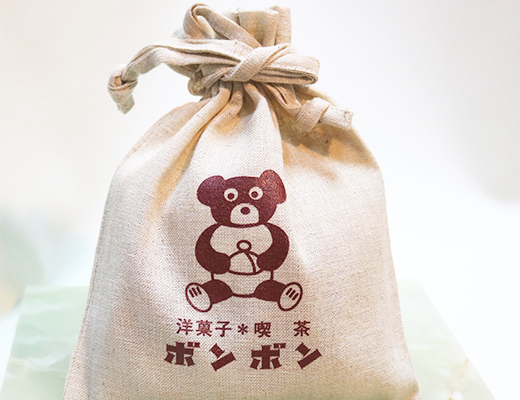 デザインやカラーにこだわり、裏面にも後ろ姿のくまちゃんとBonBonのロゴ入りのタグをつけました。